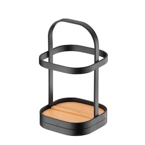 Suporte para Utensílios e Talheres Base de Madeira e Estrutura Metal Preto Fosco Future