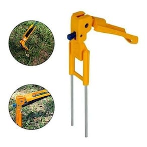 Fabricado em polímero de linhas de nylon com fibra de vidro, ele é extremamente resistente e durável. Suas hastes são de aço carbono e possuem as pontas levemente pontiagudas para melhor penetração no solo.
