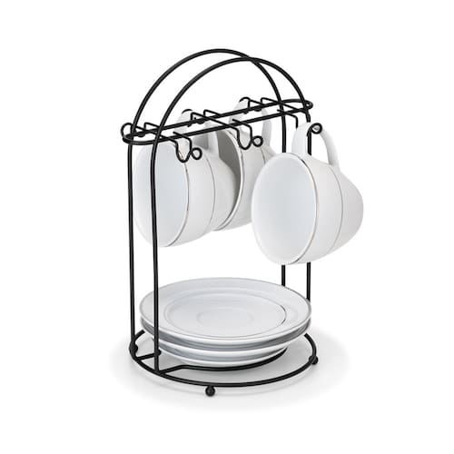 Suporte para Xícaras de Chá Arthi Black - Organização Vertical e Sofisticada O Suporte para Xícaras de Chá da Arthi é o acessório ideal para armazenar e exibir conjuntos de xícaras de chá de forma elegante. Ele combina a funcionalidade vertical com a estética moderna da Linha Black Life, otimizando o espaço da sua bancada ou armário. Características Físicas e Funcionais: Design Moderno: Apresenta acabamento em Pintura Epóxi na cor Preta sobre Aço Carbono, garantindo um visual clean, sofisticado e resistente à corrosão. Organização Vertical: Projetado com 26,5 cm de altura, acomoda xícaras de chá (que são maiores que as de café), liberando espaço horizontal. Design de Mesa/Bancada: Estrutura estável, perfeita para ser utilizada perto da área de chá ou café. Durabilidade: O revestimento em pintura epóxi protege o aço carbono, conferindo maior vida útil ao produto em ambientes de cozinha. Marca: Arthi (Ref. 2464). Especificações Técnicas: Funcionalidade: Suporte para xícaras de chá. Cor: Preto Dimensões: Comprimento 18,7 X Largura 16 X Altura 26,5 cm Material: Aço Carbono com Acabamento em Pintura Epóxi (Preto)