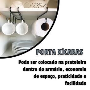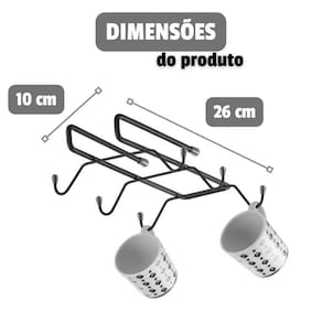 Suporte para xícaras suspenso organizador armário cozinha Porta xícaras com capacidade para 6 xícaras A solução ideal para acabar com o empilhamento de xícaras ou canecas o porta xícaras é acoplado em prateleiras de 15mm a 18mm de espessura, permitindo a organização constante e a praticidade na hora de guardar ou retirar suas louças. Cores: preto Dimensões: 26 x 10 x 9 cm Esse anúncio contém: 1 - porta xícaras com capacidade para 6 xícaras Os organizadores de armário de cozinha aramado são ideais para proporcionar organização no armário e manter as louças em segurança, bem como otimizar o espaço, pois cria uma prateleira que permite o armazenamento produtos em lugares antes não ocupados. Versátil, pode ser na cozinha, despensa, lavanderia, possui fácil sistema de instalação, pois não se faz necessário o uso de parafusos ou ferramentas, já vai pronto pra uso. O produto conta com uma estrutura em aço 100% resistente, material que proporciona alta durabilidade e qualidade além de ser feito em aço e ter sua pintura epóxi com tratamento antiferrugem garantindo maior durabilidade. de fábrica de 90 dias Marca: Não Informado Ean: 7801038374360