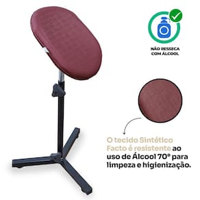Possui regulagens de altura e a base de apoio da perna é articulável que facilita o trabalho e oferece maior conforto.