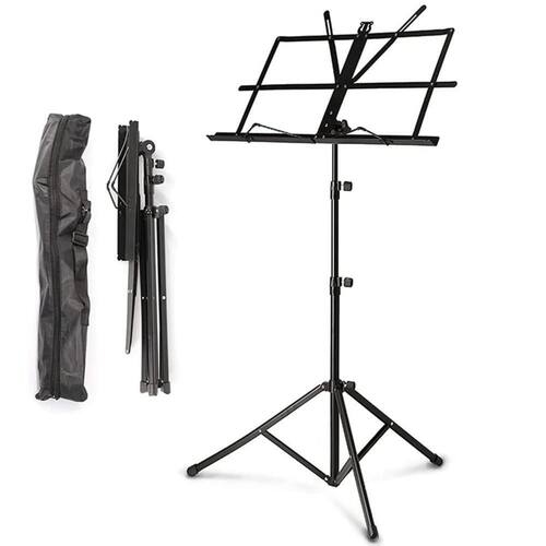Suporte de Partitura Ajustável com Tripé e Bolsa de TransportePerfeito para músicos que buscam qualidade e praticidade, este suporte de partitura é altamente versátil e atende tanto iniciantes quanto profissionais. Com estrutura dobrável, leve e fácil de transportar, ele é ideal para ensaios, apresentações e uso em casa.Características Principais:Material Resistente: Construído em aço com detalhes em plástico, garantindo durabilidade e resistência para uso diário.Altura Ajustável: Com ajuste de altura entre 64 cm e 125 cm, adapta-se facilmente a músicos de diversas estaturas.Bandeja Ampla: Mede 24 cm de altura por 46,5 cm de largura, perfeita para partituras, tablets e até notebooks.Portabilidade e Facilidade de Montagem: Estrutura leve e dobrável, vem com bolsa de transporte para maior praticidade.Pés Antiderrapantes: Garante estabilidade em superfícies variadas, oferecendo segurança durante o uso.Capacidade de Carga: Suporta até 2 kg, permitindo o uso de diferentes acessórios musicais.Ajuste de Angulação: A base inclinável facilita a visualização da partitura, proporcionando mais conforto.Especificações Técnicas:Altura Mínima: 64 cmAltura Máxima:125 cmDimensões da Bandeja: 24 cm (altura) x 46,5 cm (largura)Capacidade de Carga: Até 2 kgMaterial: Aço com detalhes em plásticoCor: PretaItens Inclusos:1 Estante de Partitura1 Bolsa de Transporte PretaIdeal para músicos em movimento, este suporte de partitura traz praticidade e conforto para ensaios e performances ao vivo. Seja em orquestras, bandas ou para uso pessoal, ele é a escolha confiável para facilitar sua rotina musical e elevar sua experiência de performance!