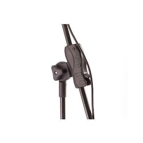 Suporte girafa para microfone. Com design inovador, regulagem com gatilho para ajuste rápido de extensão e altura, tripé antiderrapante retrátil e pintura eletrostática. Pedestal tipo Girafa para 1 microfone Pintado em epóxi preto com sistema de engate rápido (easy mounting) Altura máxima: 2,00m Altura minima: 90cm Com corpo confeccionado em tubos de alumínio tipo 6063 T5 Tratamento anodizado fosco Haste do microfone 05/8" Haste superior do tripé 05/8" Haste inferior do tripé 07/8" Pés do tripé confeccionados em aço SAE1020 com pintura eletrostática preta Conexões confeccionadas em polipropileno - PS