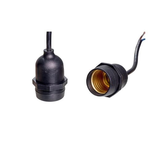 Suporte Pendente Emborrachado Preto Suporte Pendente Emborrachado Preto - G20 Suporte Pendente Emborrachado E27 4A 250V Possui suas partes condutoras completamente isoladas, garantindo maior proteção e evitando oxidação pela umidade ou outros agentes oxidantes. Seu corpo isolado garante que as partes metálicas de uma lâmpada conectada à ele não sofra com ação de intempéries. Pode ser utilizado com lâmpadas halógenas, fluorescentes compactas e lâmpadas LED