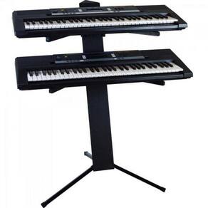 Suporte piramidal para 2 teclados ou 1 teclado e um notebook.