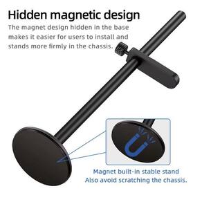 Suporte Para Placa De Vídeo Ajustável Preto Com Base Imantada Ax-B100 Este suporte de GPU é um acessório indispensável para suportar placas gráficas. O design da base magnética facilita a instalação e remoção. Seu design elegante e minimalista acrescenta elegância.