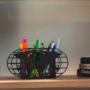 Para organizar, inspirar e decorar a mesa de trabalho. Produto de aço fabricado no Brasil. Porque viajar é trocar a roupa da alma, apurar os sentidos, abrir os horizontes, pintar o mundo com novas cores, e desafiar os nossos limites. Vamos viajar, estudar, explorar o mundo. Sugestão de presente para quem ama viajar, explorar novos lugares e curte geografia. Os lápis, canetas, tesoura não acompanham o produto.