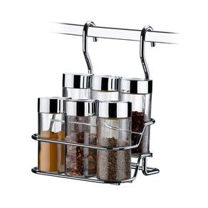 SUPORTE PARA TEMPEROS E CONDIMENTOS - 6 POTES DE VIDRO