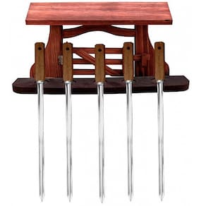 Suporte porta espetos de churrasco em madeira rústica - porteira Suporte porta 5 espetos de churrasco em madeira rústica - porteira