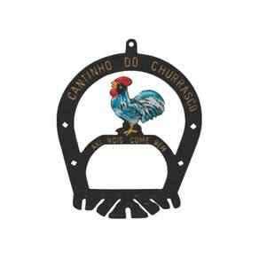 Fabricado em alumínio fundido, o suporte é resistente à corrosão e ao desgaste do tempo. Seu formato permite armazenar espetos com segurança, sem ocupar muito espaço. O detalhe do galo em alto relevo agrega charme rústico ao ambiente e é ideal para ambientes internos ou externos, como cozinhas, churrasqueiras ou varandas. Facilita o acesso aos espetos e mantém tudo em ordem durante o preparo do churrasco.