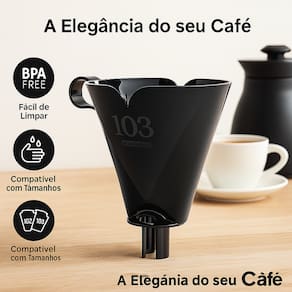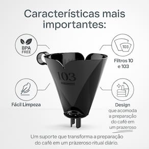 Suporte plástico com design clássico para filtro de café tamanho universal 103. Encaixe perfeito em bule, térmicas e na decoração da sua cozinha. • Tamanho 103. • Todos os produtos Sanremo são atóxicos: livres de BPA. Marca: Não Informado