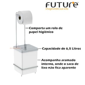 01 - Suporte Porta Papel Higiênico Com Lixeira Quadrada 6,5 Litros