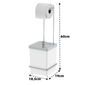 - Medidas do suporte de papel higiênico: 18,5cm (Comp.) x 19cm (Larg.) x 60cm (Alt.)