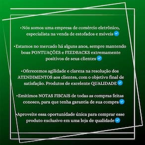 Variações de Cor: Pode haver diferença de tonalidade entre a imagem e o produto real devido ao tratamento de imagens e à calibração de cores do seu monitor.