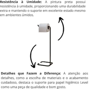 Renove seu banheiro ou lavabo com o Porta Papel Higiênico de Chão Level, uma peça que combina design moderno e sofisticado. Sua base de aço maciço e pintura eletrostática com acabamento preto fosco garantem não apenas beleza, mas também uma estabilidade excepcional, evitando tombamentos durante o uso.