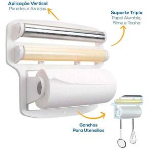 Suporte porta papel toalha aluminio plastico 4 em 1 de parede branco Organize sua cozinha com o novo porta rolos dr util