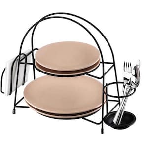 Suporte Porta Pratos Talheres Guardanapos Alice Schmitt Preto Fosco Bancada