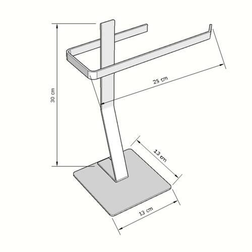 Especificações Técnicas Suporte Cor: Branco Dimensão Base: 13x13cm Altura: 30cm Largura da Hastes do Toalheiro: 25cm