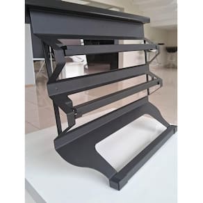 Suporte Porta Rolos Triplo de Encaixe Papel Toalha Alumínio e Filme PVC Aço Preto Piva Cozinha.