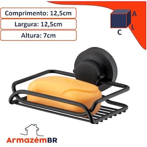 Este porta sabonete é fabricado em aço carbono e possui acabamento que garante maior resistência a impactos. O sistema de fixação é prático e rápido, dispensa o uso de furos e a sujeira, pois conta com um sistema de sucção a vácuo que permite a rápida instalação em superfícies lisas e brilhantes.