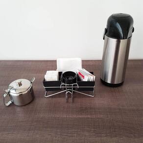 Pequenos cuidados com seu lar fazem toda a diferença. #Praticidade e Otimização de Espaço #Design Moderno #Organização Garantia: 90 dias / Peso: 310g / Cor: Cromado, Branco ou Preto / Ref: 1458 Dimensões conjunto: 22,5cm (C) x 16,5cm (L) x 9cm (A). Dimensão pote quadrado: 7cm (C) x 7cm (L) x 5cm (A). Dimensão pote redondo: 6cm (D) x 7,5cm (L). Cuidados: Não lavar com materiais abrasivos. Espessura do arame: 4mm. Material: - Plástico; - Aço carbono cromado: Com uma camada extra de protetivo aplicado sobre a peça que proporciona cinco vezes mais durabilidade e resistência à corrosão. Organize seus sachês, mexedores, guardanapos, açucares e adoçante com esse suporte que oferece praticidade. A estrutura em aço contém espaço para colocar os guardanapos e o adoçante. O suporte permite à você pegar todo o conjunto de uma só vez, proporcionando rapidez para passar de uma pessoa para a outra e para a limpeza da mesa ou bancada em que estiver. É ideal para ambientes corporativos, pois mantém o espaço organizado e decorado.