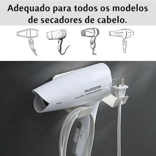Suporte Porta Secador Cabelo E Cabo Fixa Na Parede Sem Furos Nunca mais deixe seu secador jogado pela casa e chega daquele tira e põe do armário Suporte universal para todos os secadores Esse suporte de secador de cabelo é de 1º Linha produzido com material Acrilico nacional e de qualidade, o que proporciona muito mais resistência durabilidade e transparência. Versátil e conveniente, o suporte para secador de parede resolve problema que todos nós odiamos Ideal para parede de ambientes como banheiro, quartos, salões ou fixar na porta do armário. Deixe o seu secador fixado no local perfeito e de fácil acesso para seu uso frequente. Além de organizar deixa um visual elegante ao ambiente. Acompanha dupla face para fixação Seu sistema autoadesivo avançado dá a fixação necessária para suportar o peso sem desgrudar. Caracteristicas: Resistente e durável; Design inovador; Ultra Fixação; Multi Funcional; Material Acrilico; Tamanho: 5cm Altura x 9 profundidade x 11 largura Instruções de uso: Limpe bem a superfície com álcool para tirar toda sujeira, poeira, gordura, etc. Importante se atentar para que a superfície não esteja úmida. Retire o adesivo e realize a instalação no local desejado pressionando bem por 30 segundos para remover o ar entre o adesivo e a superfície. Aguarde por 10 minutos para utilizar. Observações: O suporte pode ser removido sem deixar vestígios. Marca: LRP