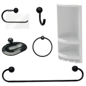 Kit para banheiro redondo 5 peças preto Os acessórios para banheiro são itens essenciais para manter o ambiente organizado, prático e funcional. A papeleira é um suporte para papel higiênico que geralmente é instalado na parede, próximo ao vaso sanitário. O porta toalha argola é um item importante para manter as toalhas sempre à mão e secas. Ele pode ser instalado na parede ou na porta do armário, por exemplo. O porta toalha bastão possui a mesma funcionalidade, e geralmente é fixado na parede, próximo ao chuveiro ou banheira. O cabide simples é um item que serve para pendurar roupas, toalhas e acessórios. Ele pode ser instalado na parede ou na porta do armário, por exemplo. A saboneteira é um item que serve para apoiar o sabonete, mantendo-o seco e evitando que escorregue. Dessa forma, é possível garantir um banheiro organizado e bem equipado, que atenda às necessidades dos usuários.