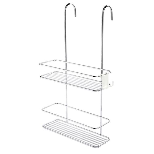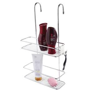 Este suporte foi desenvolvido para acomodar shampoos e condicionadores, bem como possui um local específico para buchas, esponjas e barbeadores, pois acompanha gancho plástico móvel.