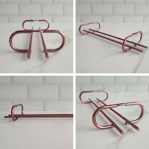 Suporte Porta Taças Reto 25cm Organizador De Taças Suspenso. #Linha organizadora MS Aramados #Suporte aramado porta taças #Suas taças sempre à mão Garantia: 90 Dias / Peso: 128g / Cores: Dourado ou rose gold / Ref: 83066E83065 Dimensões: 25cm (C) x 9,5cm (L) x 4cm (A) Distância entre os parafusos: 18cm Distância das hastes: 2cm Abertura para base da taça: 8cm Conteúdo: 01 Suporte. Limpeza e cuidados: - Lavar com pano levemente umedecido com água e sabão neutro, seguido de pano seco; - Não utilizar produtos químicos ou abrasivos na limpeza; - Evitar contato com objetos cortantes. Detalhes do produto: - Possui uma camada extra de protetivo aplicado sobre a pintura que proporciona grande durabilidade e resistência à corrosão; - A capacidade é variável de acordo com o tamanho da base das taças; - Não acompanham parafusos para fixação. Material: - Aço SAE 1006/1008. Mantenha as taças ao alcance das mãos com esse suporte organizador de taças de 25cm com acabamento em alto brilho e aproveite todos os cantinhos do bar na sala de estar, na cozinha ou suspenso em prateleiras. Dentro do armário de cozinha, utilize o porta taças para ganhar espaços nas prateleiras e otimizar a organização. Taças são objetos delicados, por isso o suporte é essencial para uma organização prática e segura, evitando empilhar, quebrar ou lascar suas taças.