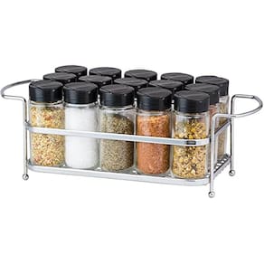 Suporte Porta Tempero Cromado 15 Potes Vidro Tampa Preta O porta temperos de vidro é indispensável em sua cozinha. Com esse suporte aramado você terá os temperos sempre ao alcance, durante o preparo dos alimentos. Possui design inovador com acabamento em alto brilho, além de alças laterais que auxiliar no transporte, por isso pode facilmente ser levado a mesa para complementar as refeições.