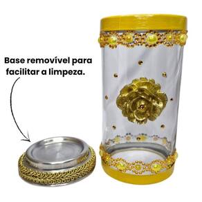 O Suporte de Vela Oxum da Bialluz é feito de alumínio e vidro, sendo ideal para uma vela de 7 dias. Por ser um castiçal com material antichamas, você tem maior segurança ao acender suas velas. Esse lindo presente é delicadamente decorado de forma artesanal para garantir a elegância e qualidade de cada peça. Com detalhes luxuosos que brilham e cores vivas que deixam o vaso ainda mais maravilhoso. É um excelente presente para valorizar a decoração do seu ambiente. Seus guardiões e guardiãs agradecerão tanto carinho, cuidado e beleza desse presente. A Bialluz é uma empresa idônea e especializada em pedras semipreciosas e produtos artesanais de decoração.Nossos produtos são selecionados ou produzidos com muito carinho e embalados com o máximo cuidado possível para que a sua experiência seja inesquecível.