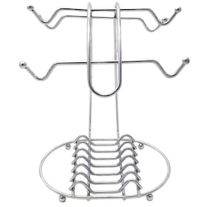 Este porta xícaras e pires serve para quem quer ganhar espaço na sua cozinha e organizar seus utensílios de uma forma que os mesmos estejam sempre ao seu alcance. Você pode optar pelas cores cobre ou cromado. Este suporte de xícaras e pires trás elegância ao seu ambiente. O aramado pode ser usado em cima da pia, bancada, mesa ou dentro de armários. Possuí design projetado para comportar seis xícaras e seis pires. O porta xícaras e pires é ideal para ser posto sobre sua mesa durante as refeições, dando um toque de requinte ao seu coffee break.