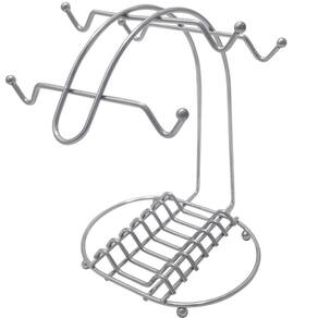 Suporte Porta Xícaras e Pires Café Chá Organizador Cromado - Cinza