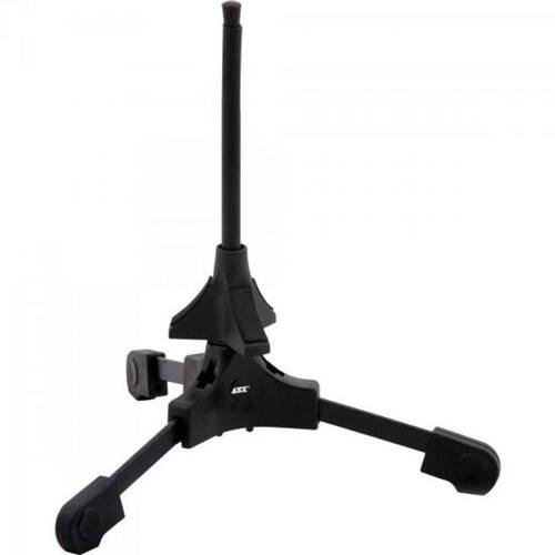 Suporte Portátil Para Instrumentos De Sopro S4 Preto Ask Suporte para Sax Soprano, Trompete, Clarinete ou Flauta. Quatro opções em um só suporte! Com tripé retrátil.Dimensões:Altura Máx.: 320mm Diâmetro do Tripé: 350mm Peso: 0,67 Kg Cor:Preto Material:Aço e Plástico