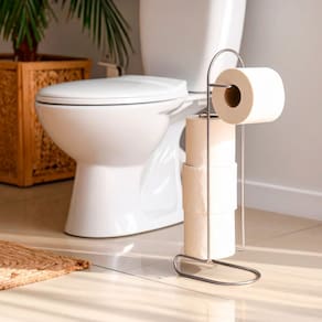 Suporte para 4 Rolos Arthi Cromado (Chão) - Armazenamento Compacto O Suporte para Papel Higiênico de Chão da Arthi oferece uma solução elegante e compacta para o armazenamento vertical no banheiro ou lavabo. Sua estrutura permite manter rolos de papel higiênico acessíveis, eliminando a necessidade de fixação na parede. Características Físicas e Funcionais: Capacidade: Projetado para armazenar 4 rolos de papel higiênico, garantindo reserva sem ocupar espaço horizontal na bancada. Design de Chão: Não requer furos ou instalação; é totalmente portátil e estável. Organização Vertical: Seu formato alongado (49,5 cm de altura) utiliza o espaço vertical do ambiente de forma eficiente. Material Premium: Fabricado em Aço Cromado, conferindo resistência à umidade, durabilidade e um acabamento brilhante e sofisticado. Marca: Arthi. Especificações Técnicas: Capacidade: 4 rolos Dimensões: Comprimento 13,2 X Largura 18,5 X Altura 49,5 cm Material: Aço Cromado Mantenha seus rolos de papel organizados e acessíveis com a qualidade e o design do Suporte Arthi.