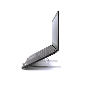 Suporte Pra Notebook Ajustável Portátil de Alumínio T-S021Estável sem Tremer;Portátil e Dobrável;Utilização em Várias Dimenções;Altura ajustável em 6 níveis para manter o notebook em uma posição confortável para visualização;Ampla Compatibilidade; Adequado para laptops de 11 a 17 polegadas;Design Vazado, aumenta a circulação de ar, acelera o efeito de dissipação de calor;Com Silicone Antiderrapante.Acompanha capinha de veludo.