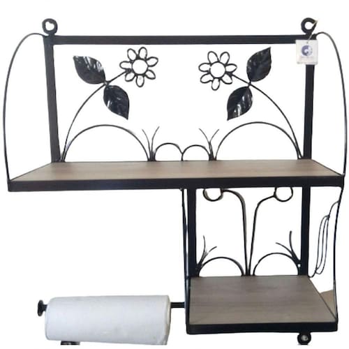 Suporte Prateleira Ferro Cor Preta Duplo Cozinha Flores
