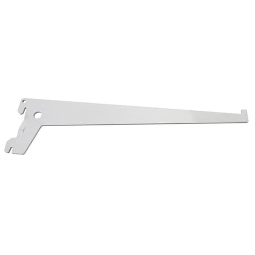 Suporte Prateleira Versátil Branco Possui um limitador de largura para que a prateleira não fique solta, não precisando parafusar o suporte na prateleira. Utilidade Ideal para usar com trilhos versátil, meiacana, duplo encaixe ou apoios. Material: Aço Capacidade de peso por suporte : 65 kg Cor: Branco Produto feito em Aço Pintado de Branco.