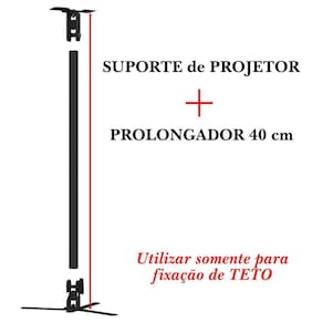 Dados do produto: - sustentação de projetor com fixação em parede ou teto - para todos os tipos de projetores, inclusive mini projetor de led com 1 furo - braço extensor de 40 cm incluso - giro de 360 - inclinação de até 90 - garantia: 1 ano - carga máxima: 3 k - distâncias do teto:7 ou 48 cm