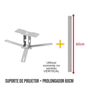 Itens do produto: - suporte de projetor - braço extensor60 cm - conjunto de parafusos de fixação