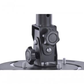 Para projetotes de teto; Material: Aço Pintura: Eletrostática Peso do Produto: 1.9 kg Peso Suportado: 10 Kg de peso máximo sustentado; Altura: 23cm / Comprimento: 17cm / Largura: 14cm Suporte articulado de 3 movimentos: Rotação de até 360 - Permite inclinação vertical de até 15 - Distância do teto: 25x35 cm (min-max); Fácil instalação;