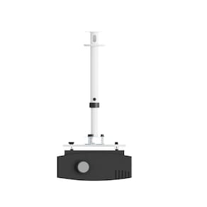 O suporte para projetor de teto telescópico STPE é de fácil instalação e ideal para todos os ambientes, tais como: salas corporativas, salas de aula, igrejas, escritórios, auditórios, teatros, entre outros, sempre com muita estabilidade e segurança. O projetor fica fixado através de parafusos nas hastes do suporte. Possui tubo telescópico com regulagem de altura. Permite a passagem de cabos no interior do tubo. Possui rotação de 360 graus sem o uso de ferramentas, bastando simplesmente posicionar o projetor com as mãos. A inclinação é feita por meios de manípulos para melhor ajuste da imagem na tela. Referência: STPE-600T-W Atende furação do projetor: Mínima de 140mm até máxima de 350mm. Abertura das hastes do suporte: Mínima de 150mm até máxima de 300mm, pelos manípulos. Local de instalação: Teto Distância mínima do teto: 52 cm Distância máxima do teto: 79 cm Inclinação: 18º Carga máxima: 25 kg Cor: Branca Material do suporte: Aço carbono com pintura eletrostática a pó e acabamento de plástico de engenharia. Acompanha kit de parafusos: Sim Permite passagem interna dos cabos: Sim Giro do projetor: 360º Pontos de fixação: 3 pontos no teto e 4 pontos no projetor. : 3 anos Dimensões da embalagem AxLxP : 12x12x50 cm Peso: 2,460 kg Fabricação: Nacional Importante: É indispensável que o teto tenha resistência suficiente para suportar o peso do projetor juntamente com o suporte. Orientamos que a instalação deverá ser feita por um profissional da área. Ean: 7898922550931