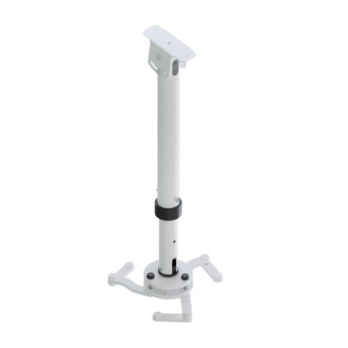 O suporte para projetor telescópico é de fácil instalação e ideal para todos os ambientes que tenham o teto inclinado, tais como: salas corporativas, salas de aula, igrejas, escritórios, auditórios, teatros, entre outros, sempre com muita estabilidade e segurança. O projetor fica fixado através de parafusos nas hastes do suporte. Possui tubo telescópico com regulagem de altura. Permite a passagem de cabos no interior do tubo. Possui rotação de 360 graus sem o uso de ferramentas, bastando simplesmente posicionar o projetor com as mãos. A inclinação do projetor é feita por meios de manípulos para melhor ajuste da imagem na tela. Referencia: STPI-5075T-W Atende furação do projetor de circunferência máxima: 37 cm Local de instalação: Teto Distância mínima do teto: 50 cm Distância máxima do teto: 75 cm Inclinação do teto: -35º até +35º Inclinação do projetor: Até 15º Carga máxima: 10 kg Cor: Branca Material do suporte: Aço carbono com pintura eletrostática a pó e acabamento de plástico de engenharia. Acompanha kit de parafusos: Sim Permite passagem interna dos cabos: Sim Giro do projetor: 360º Pontos de fixação: 3 pontos no teto e 3 pontos no projetor. Garantia: 3 anos Dimensões da embalagem AxLxP : 12x12x45 cm Peso: 1,750 kg Fabricação: Nacional