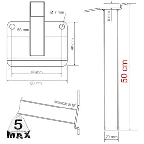 SUPORTE PARA REFLETOR - FACHADA, BANNERS OU OUT-DOOR - BRAÇO com 50 cm e Inclinação 10°