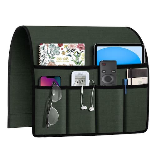 O suporte remoto Armrest Organizer para cadeirinha reclinável -?Material premium?O suporte de controle remoto Joywell é feito de uma ótima seleção de tecido de linho de 500 g/m2 e é projetado com uma trama firme de acabamento em duas camadas. Em comparação com outros suportes de sofá, será mais durável e mais espesso. Também é resistente a rugas, resistente à cor e à prova de encolhimento -?Handy Pockets?6 bolsos do organizador de apoio de braço foram projetados para suas necessidades. Você pode colocar jornais, revistas, iPad e tablet nos dois maiores bolsos, controles remotos, óculos, telefones celulares e outros dispositivos portáteis nos quatro bolsos padrão e mantê-los à mão sempre que precisar -?Amplamente aplicável?Este suporte remoto ajustável para sofá cabe em qualquer tamanho de apoios de braços no sofá, sofá, poltrona reclinável, mesmo pendurados na parede, mesa e cabeceira. Portanto, é realmente adequado para vários lugares, como sala de estar, quarto, escritório e quarto de hotel. O suporte multicolorido atende às suas necessidades de diversos estilos domésticos -?Função múltipla?O suporte de braço não é apenas conveniente para você guardar coisas diárias ao seu alcance, mas também evita que seu valioso apoio de braço do sofá seja arranhado e sujo por animais de estimação -?Fácil de cuidar e instalar?Nosso suporte de cadeira reclinável é lavável à máquina, de excelente qualidade faz com que possa ser utilizado por muito tempo. Coloque a extremidade do suporte do controle remoto embaixo da almofada do sofá e, em seguida, passe a outra extremidade ao redor do apoio de braço do sofá para que a mão possa pegar o conteúdo do bolso. O organizador do apoio de braço do sofá nunca deslizará com a extremidade pressionada