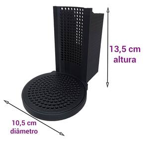Suporte com Reservatório 3 Em 1 Compacto Nespresso Essenza e Mini Compatível com Nespresso Essenza e Mini. Substitui o coletor de pingos, o reservatório de cápsulas usadas até 9 cápsulas e a bandeja de resíduos Encaixe simples, sem necessidade de adaptações Fácil de instalar e remover para limpeza Fabricado em impressão 3D resistente Base redonda com 100 mm de diâmetro, ideal para canecas de até 10 cm Marca: Não Informado