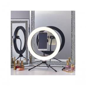 Ring light de 10 polegadas, suporte ajustável para telefone, rotação de 360 graus, controle de intensidade de luz.