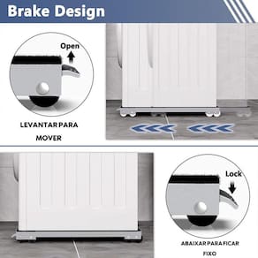 Esse suporte é fácil de instalar e possui ajuste de profundidade e largura, garantindo que se adapte perfeitamente ao seu eletrodoméstico. Além disso, ele possui um sistema de freio, que mantém o móvel seguro e estável. A base antiderrapante evita acidentes e garante um deslizamento suave.