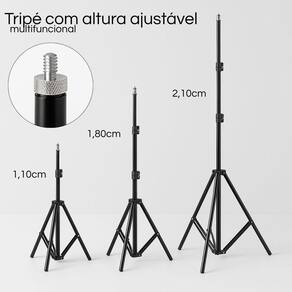 O movimento por gestos facilita a operação, tornando suas gravações mais dinâmicas e interativas. O tripé de 2,10 metros proporciona estabilidade e versatilidade, permitindo que você ajuste a altura conforme necessário para capturar a melhor perspectiva em seus vlogs e vídeos.