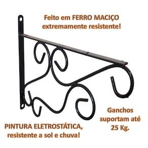 O suporte rústico de parede mão francesa de 30 cm é feito em ferro maciço, extremamente resistente e possui pintura eletrostática, anti-ferrugem e que protege o ferro contra o sol e a chuva. O suporte é perfeito para pendurar vasos de plantas e/ou instalar prateleiras de madeira que podem ser usadas para organizar livros, porta-retratos, enfeites e utensílios domésticos.